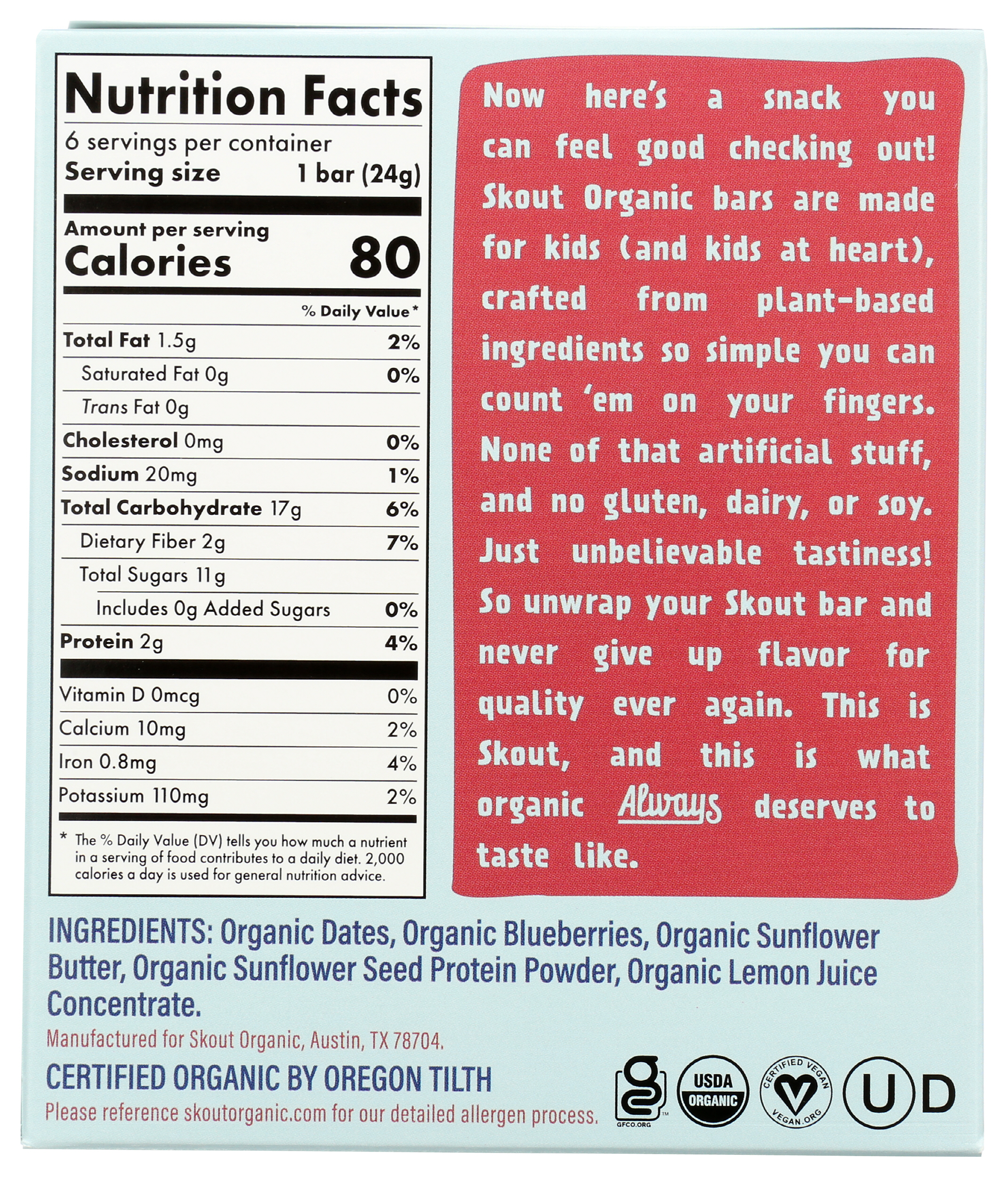ONLY 5 SIMPLE INGREDIENTS! Remember when you picked ripe blueberries straight off the bush at your local farm? Our bars taste THAT good. We’ve blended five ingredients to create the perfect snack which will bring back that late-July blueberry-picking nostalgia.