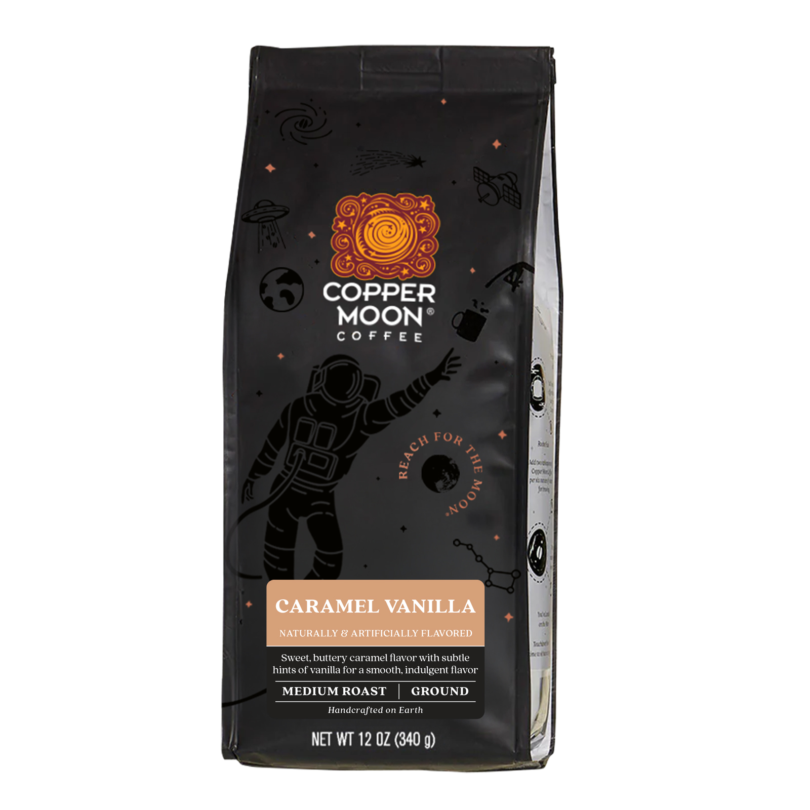 Copper Moon Coffee Caramel Vanilla Flavored Coffee is a sweet, buttery caramel-flavored blend with subtle hints of vanilla. It is the perfect blend of smooth, flavorful goodness to indulge your sweet tooth on any occasion.