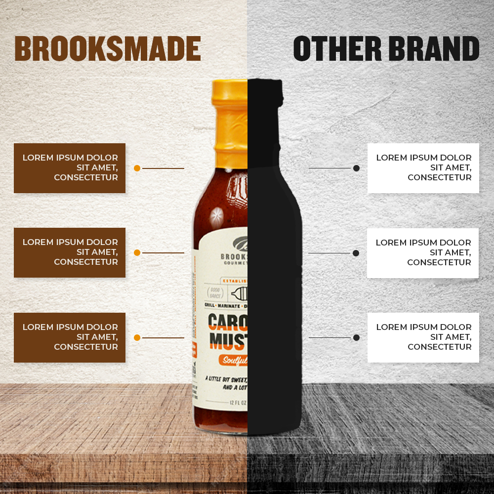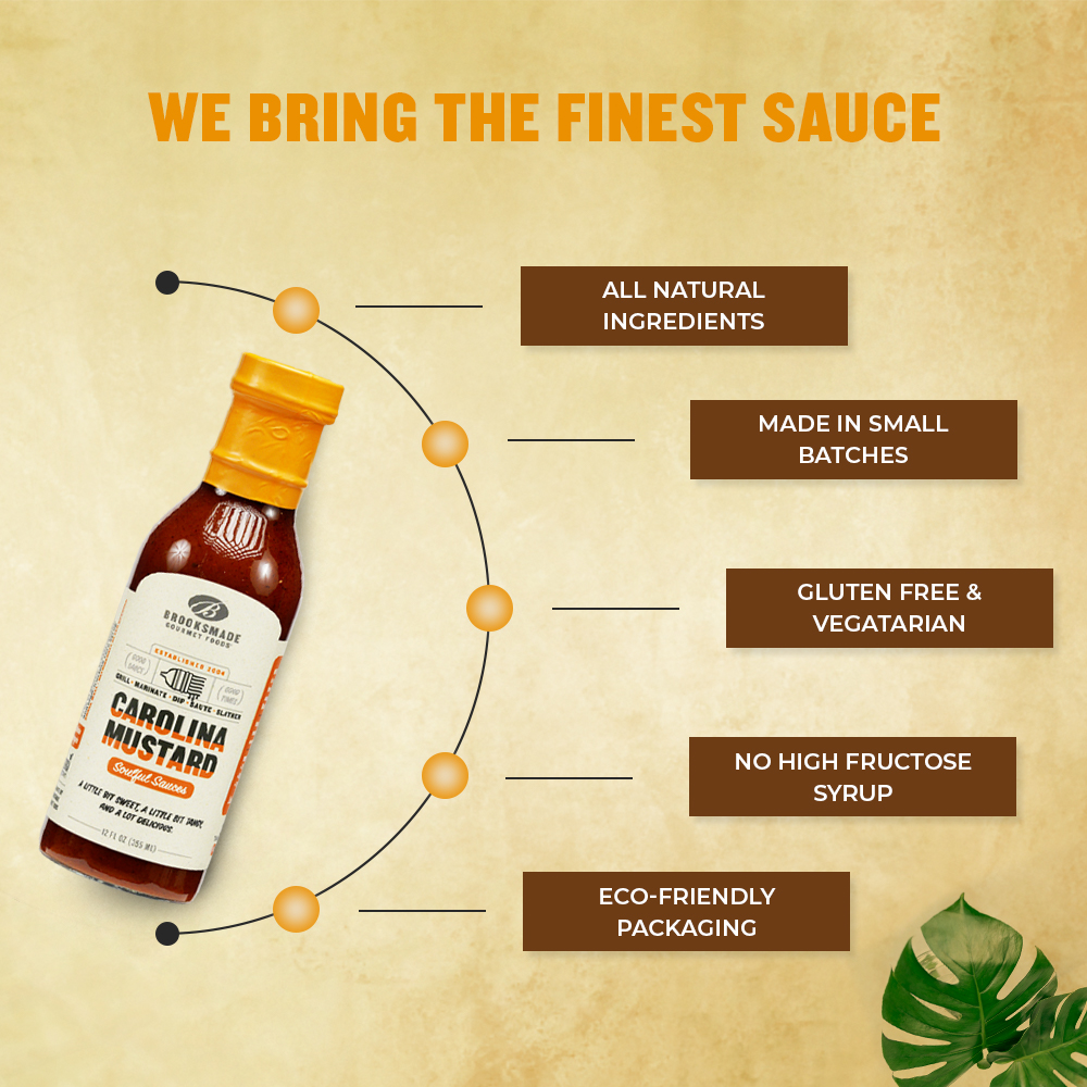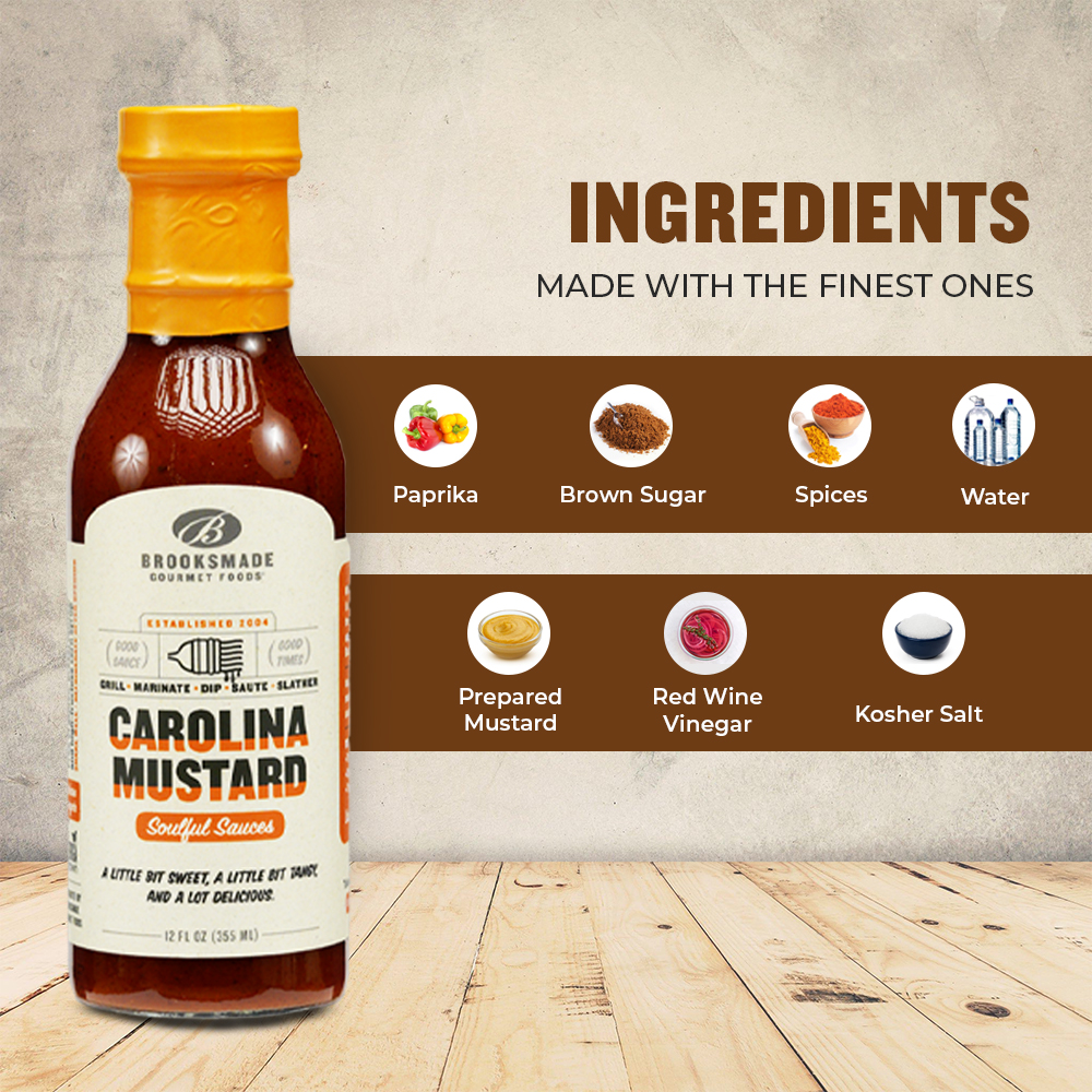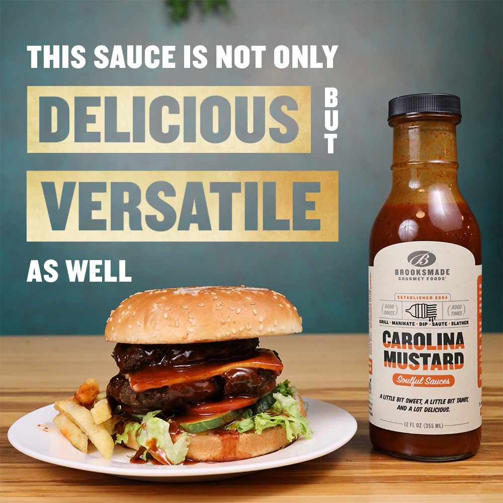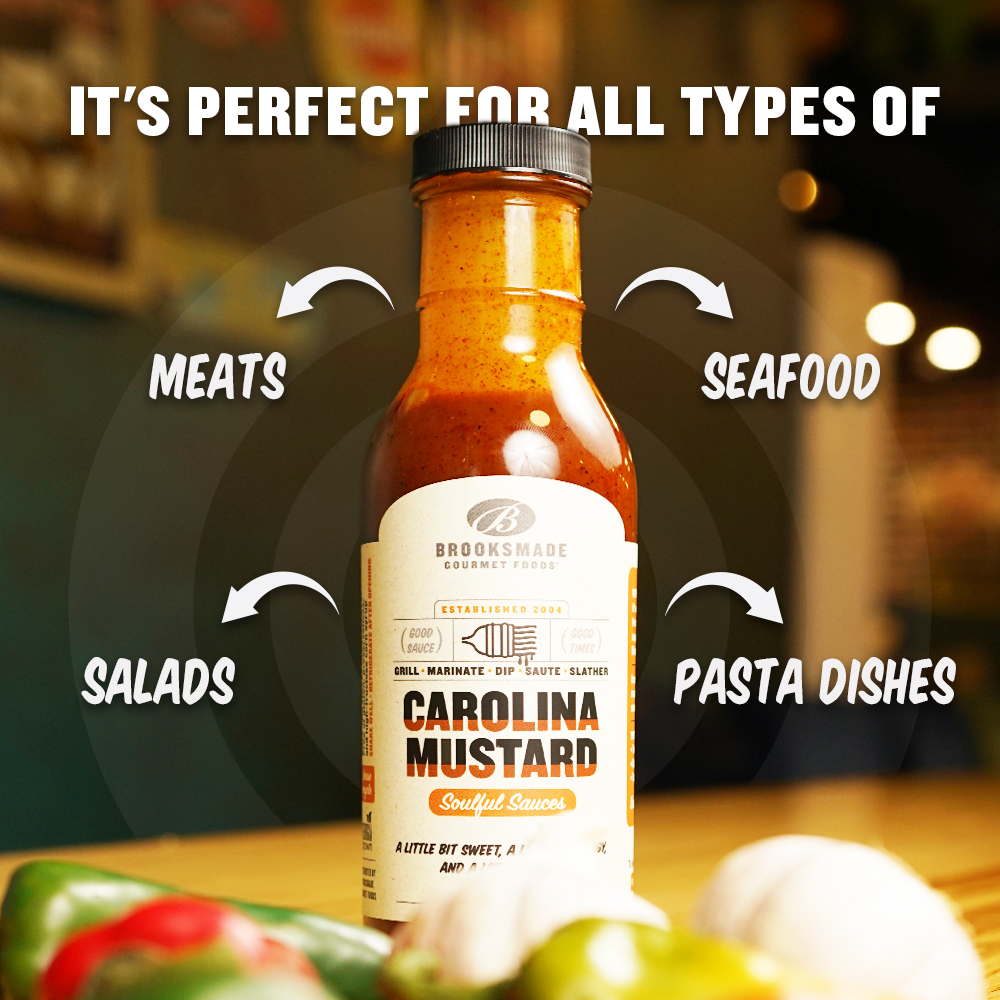 This Carolina Mustard “soulful sauce” is a little bit sweet, a little bit tangy, and a lot delicious. Made with the finest ingredients including gourmet mustard, brown sugar, red apple cider vinegar and spices, this South Carolina barbecue-inspired sauce offers the perfect taste and consistency for tossing with your favorite meat or plant-based protein, topping sandwiches and burgers, and serving alongside fries.