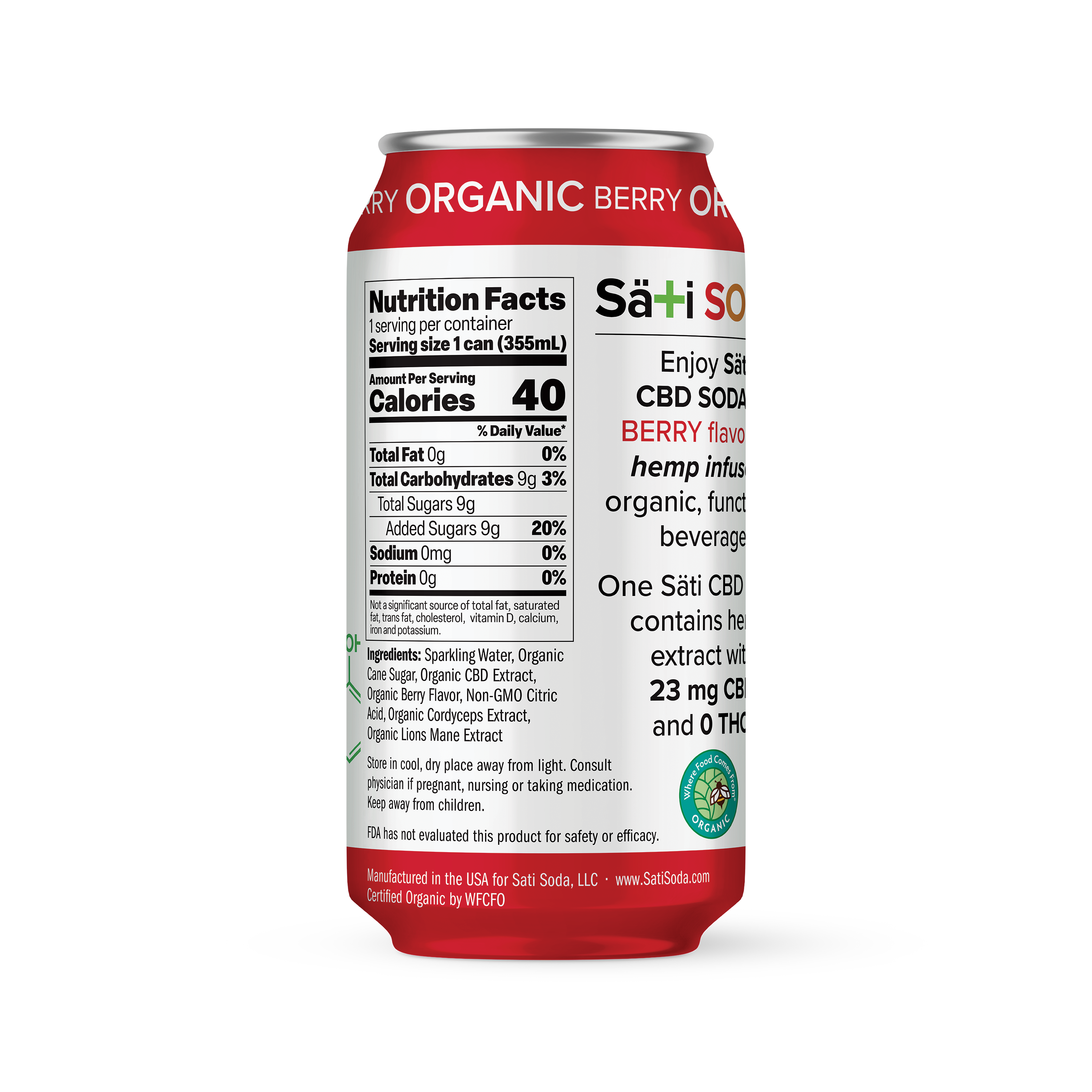 A juice clean, Berry Flavored, Hemp infused functional soda with 23 mg organic CBD (0 THC) and lions mane, cordyceps. A relaxing and beneficial non-alc beverage option.
