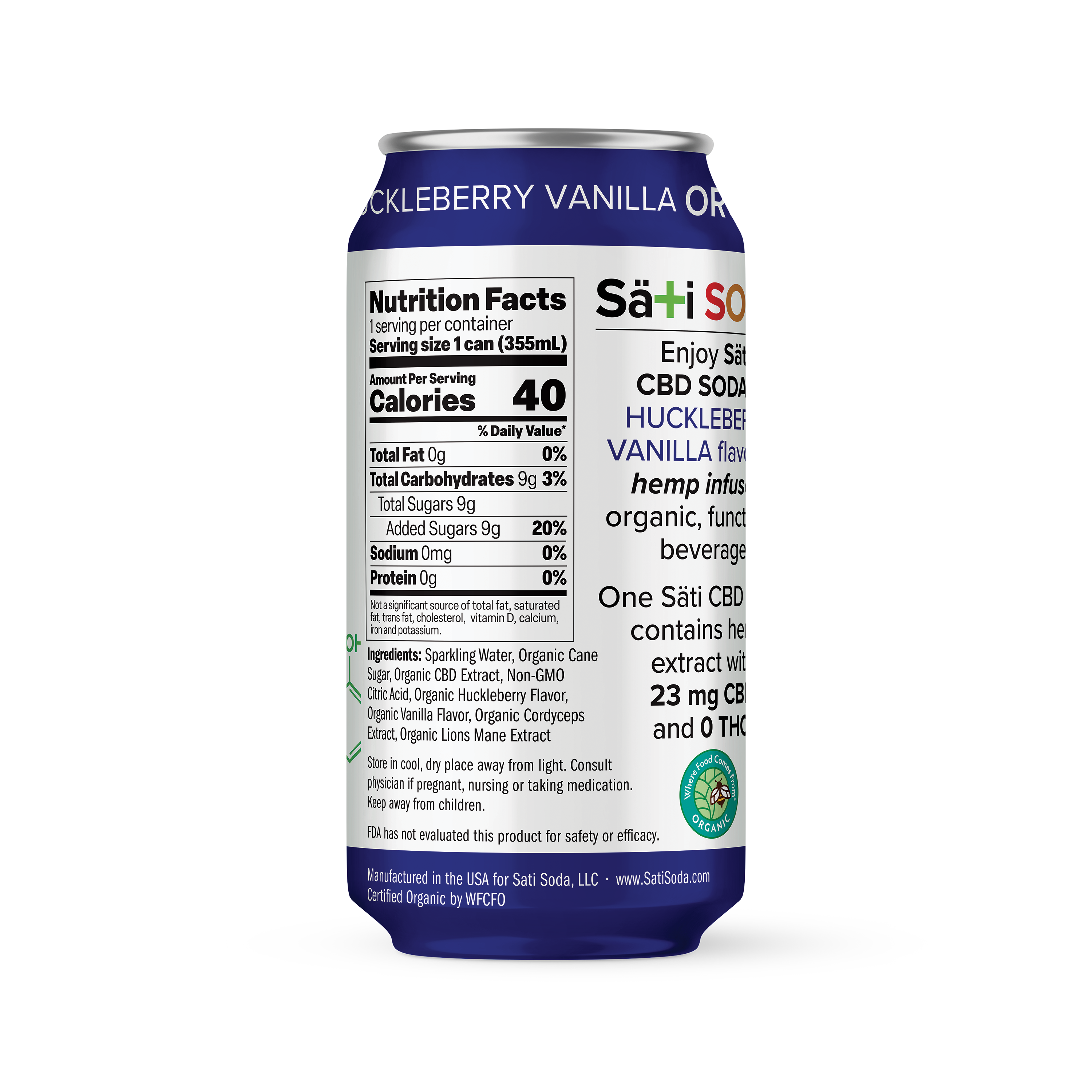 A wholesome creamy Huckleberry Vanilla flavored, Hemp infused functional soda with 23 mg organic CBD (0 THC) and lions mane, cordyceps. A calming non-alc beverage with the benefits of functional mushrooms.