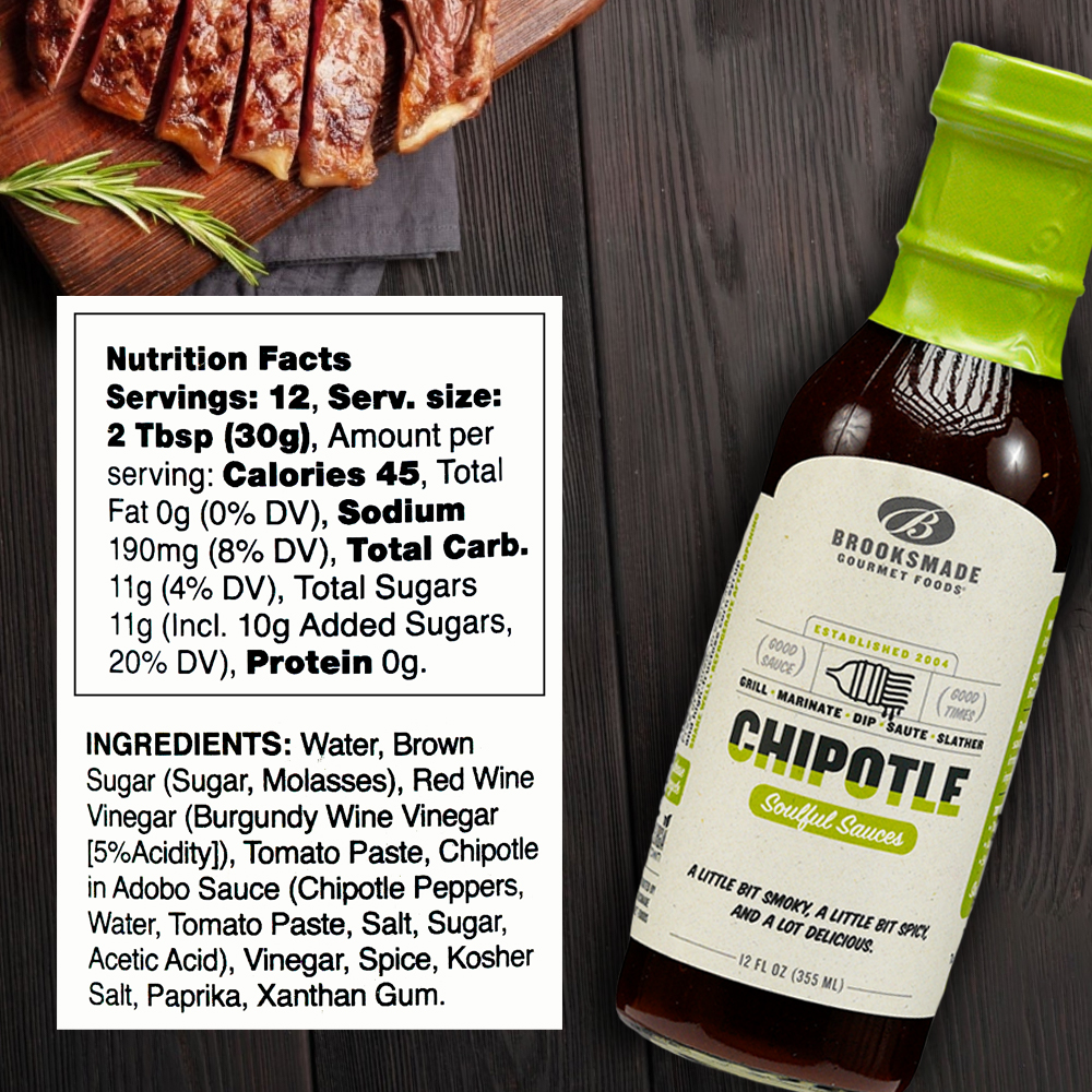 This Chipotle “soulful sauce” is a little bit smoky, a little bit spicy, and a lot delicious. Made with the finest ingredients including dark and light brown sugar, apple cider vinegar, tomato paste and chipotles in adobo sauce, this robust and spicy sauce has so many layers of flavor. Delicious with smoked, grilled or barbecued meats, on top of sandwiches, served with fries. Try it in a pot of cooked navy beans for a smoky side dish!