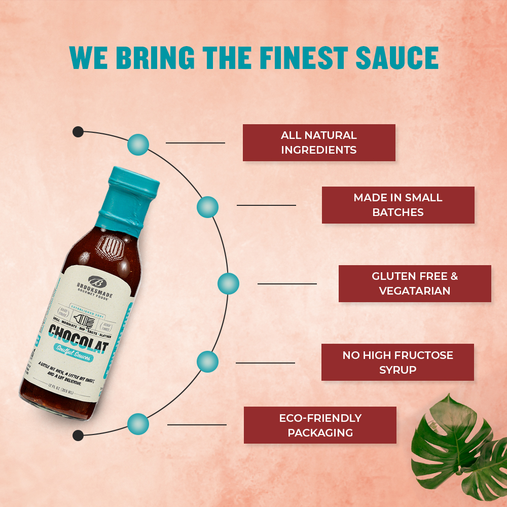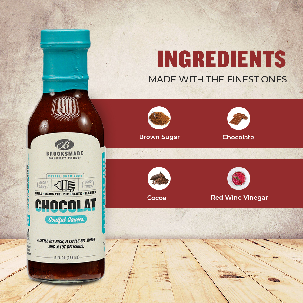 You haven’t had anything quite like this decadent sauce—a little bit rich, a little bit sweet and a lot delicious. Made with the finest ingredients including dark and light brown sugar, apple cider vinegar, tomato paste, chocolate and spices, its rich flavor and silky texture is perfect for slathering on ribs and chops, tossing pulled meats, serving alongside steak, adding to chili, pouring over roasted squash and sweet potatoes, topping a plant-based burger...the possibilities of our flagship “soulful sauce” are endless