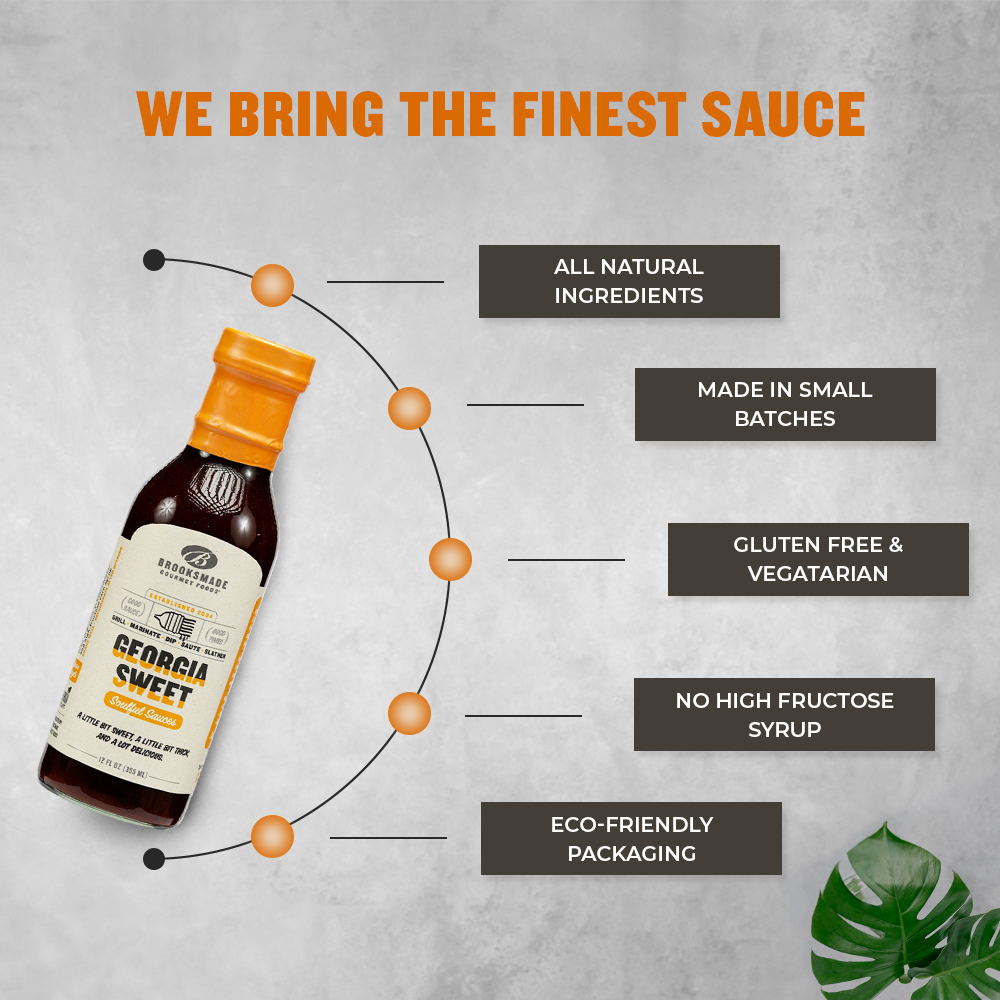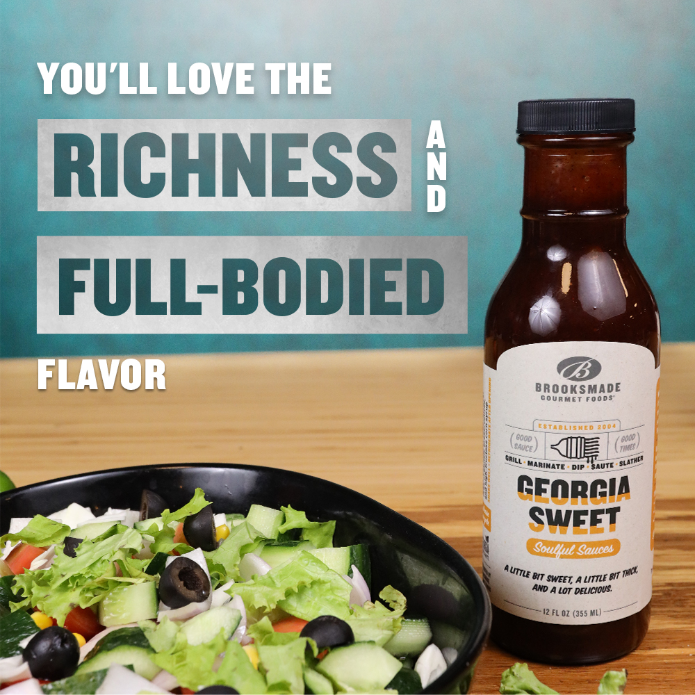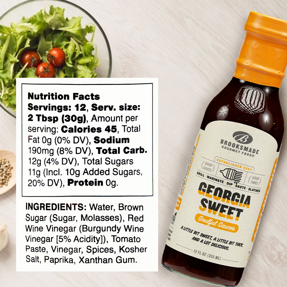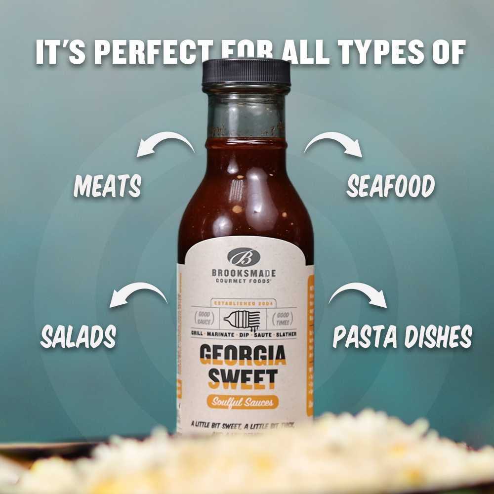 This Georgia Sweet “soulful sauce” is a little bit sweet, a little bit thick, and a lot delicious. Made with the finest ingredients including dark and light brown sugar, apple cider vinegar, tomato paste and our secret blend of spices, this sweet-but-not-too-sweet sauce will become your go-to for real Southern barbecue flavor in a bottle. Try it with shredded chicken on a soft roll with coleslaw and be transported to a summer picnic any time!