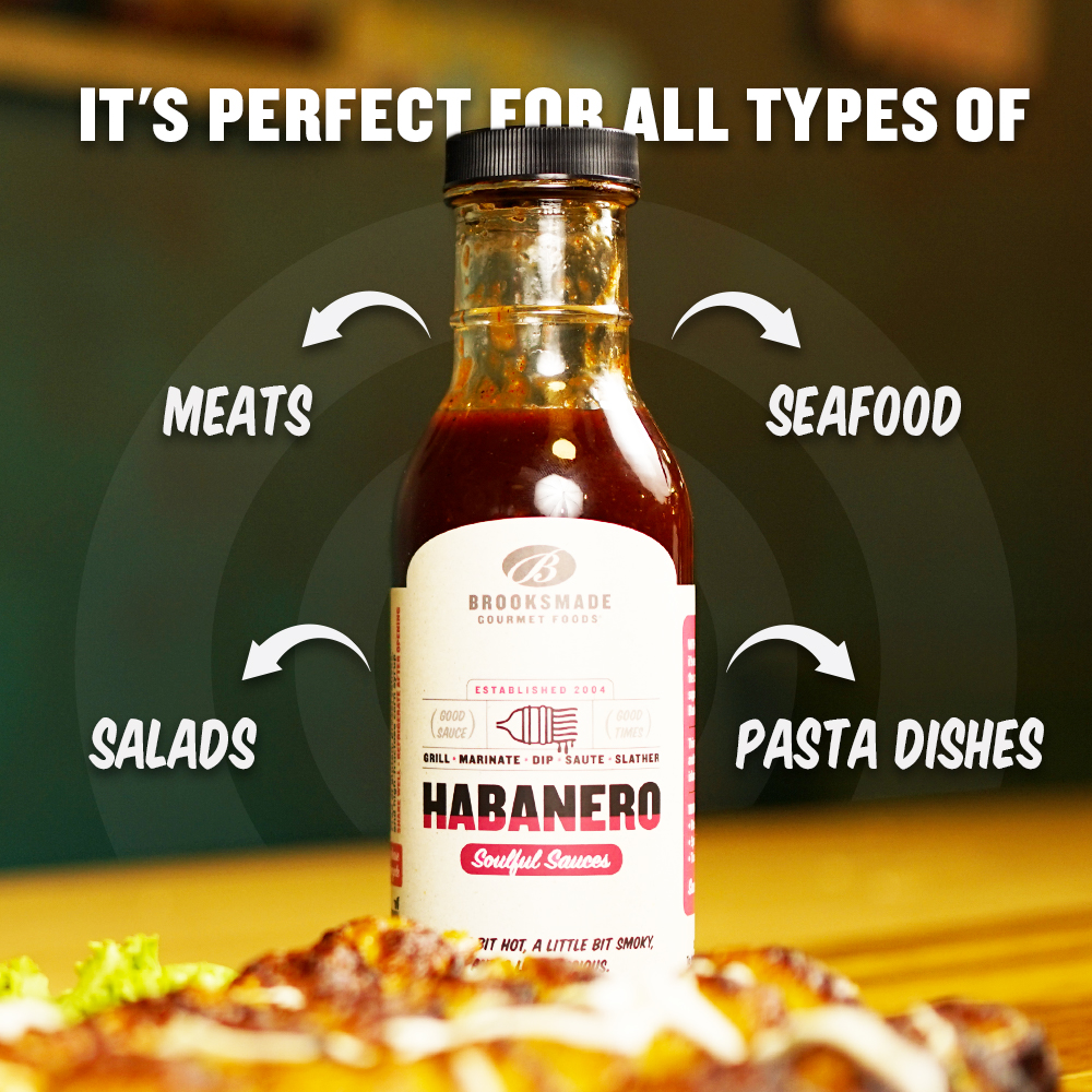 This Habanero “soulful sauce” is a little bit hot, a little bit smoky, and delicious. Made with the finest ingredients, including dark brown sugar, apple cider vinegar, tomato paste, real habanero peppers, and spices, this sauce is inspired by Chef Walter Brooks’ Caribbean heritage. Add some fruity island warmth to barbecued ribs or smoked pork chops, sprinkle into a pot of chili or use it to toss meatballs (meat or plant-based!) and top with fresh herbs for an irresistible appetizer.