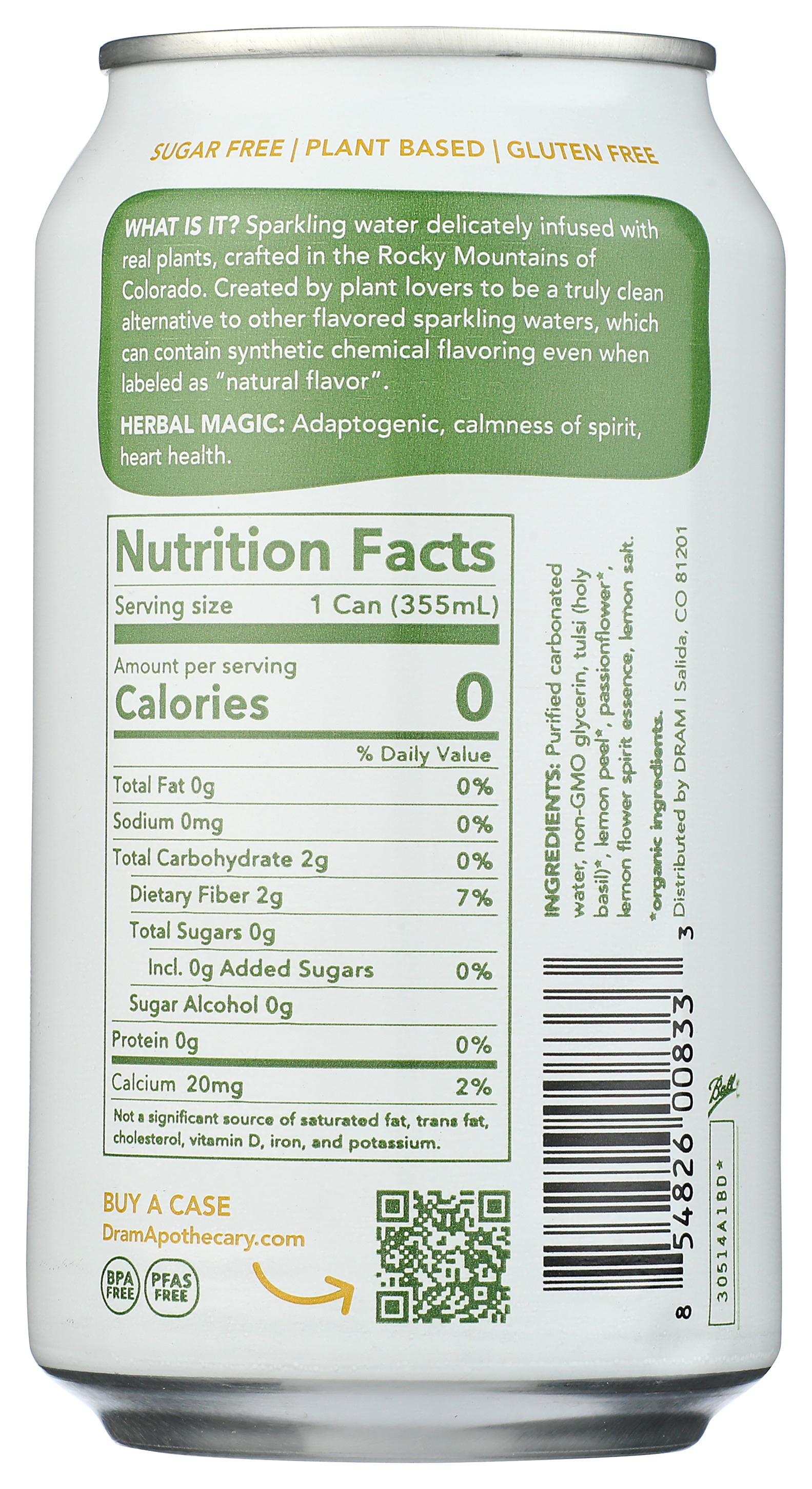 Adaptogenic sparkling water crafted with organic Holy Basil aka Tulsi, which has a complex flavor profile of Clove, Mint and a touch of Basil sweetness. We’ve added a dash of Lemon Peel for brightness, and Passionflower to calm the nerves.