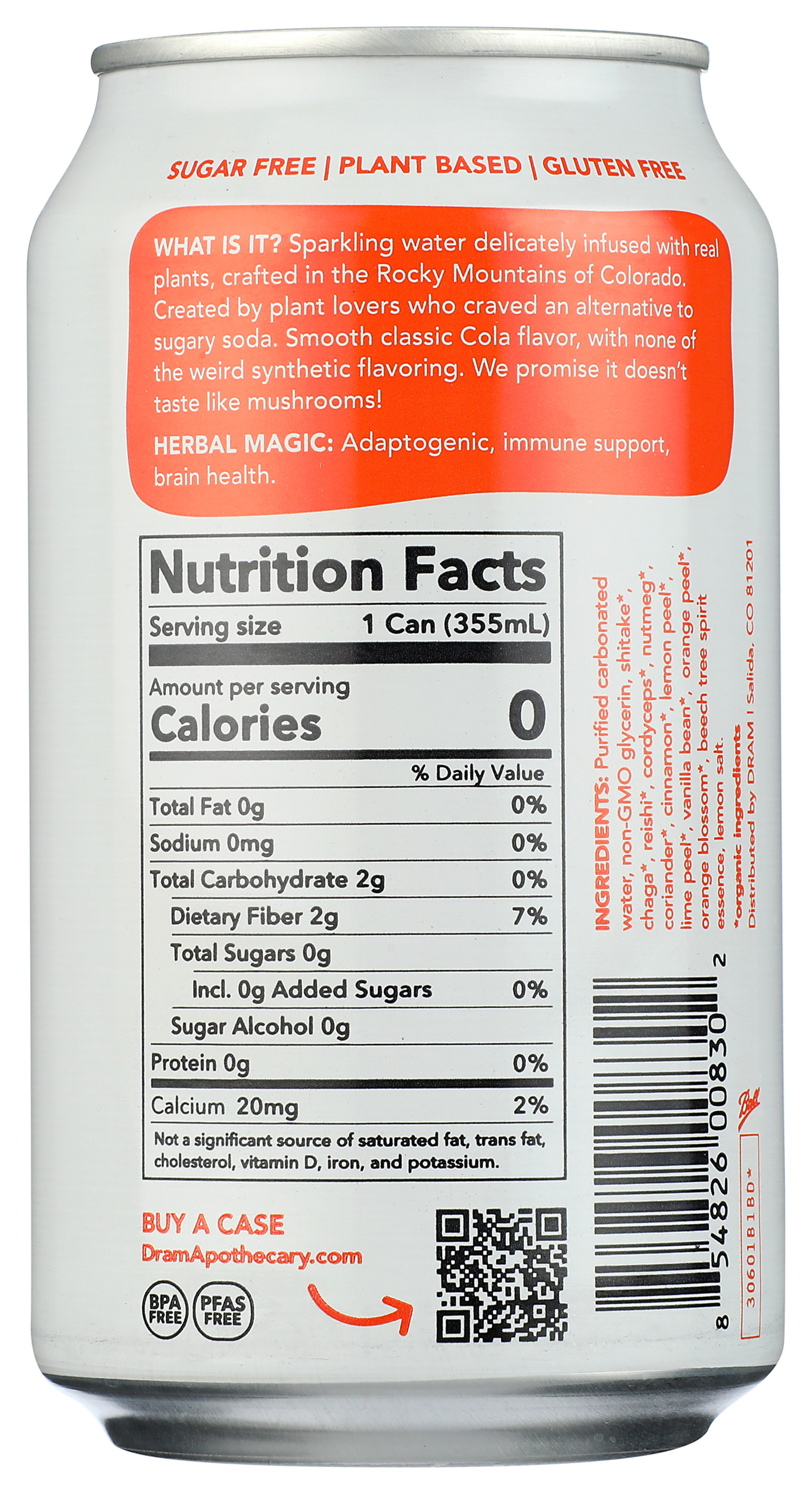 To make this super special drink we modernized classic Cola and added our own twist – a dose of 4 adaptogenic mushrooms – Shitake, Cordyceps, Lion’s Mane and Chaga for immunity and brain health. The result is a very refreshing and perfectly spiced sparkling Cola that is zero calories, and free of any weird colors, synthetic flavorings or fake sweeteners. We have crafted this recipe just like we do everything else around here – using whole organic roots, flowers, leaves, barks and mushrooms!