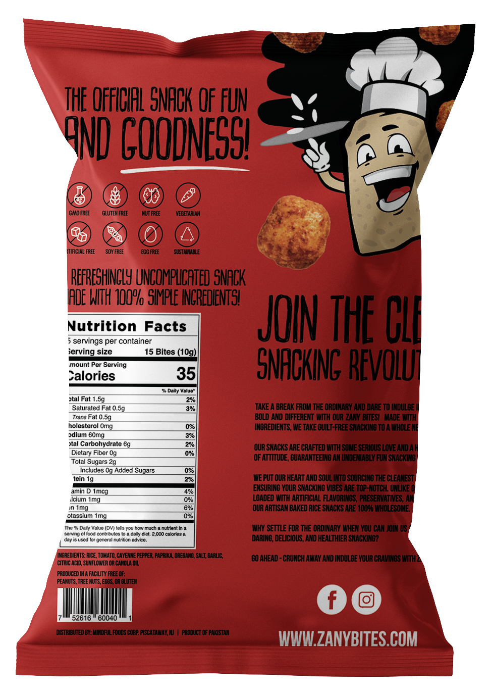 Zany Bites’ Zesty Garden Crunch rice puffs are inspired by the herbaceous, savory goodness of a veggie-loaded pizza—but made clean. Tomato, basil, garlic, and just the right amount of zing come together in every crisp bite.
