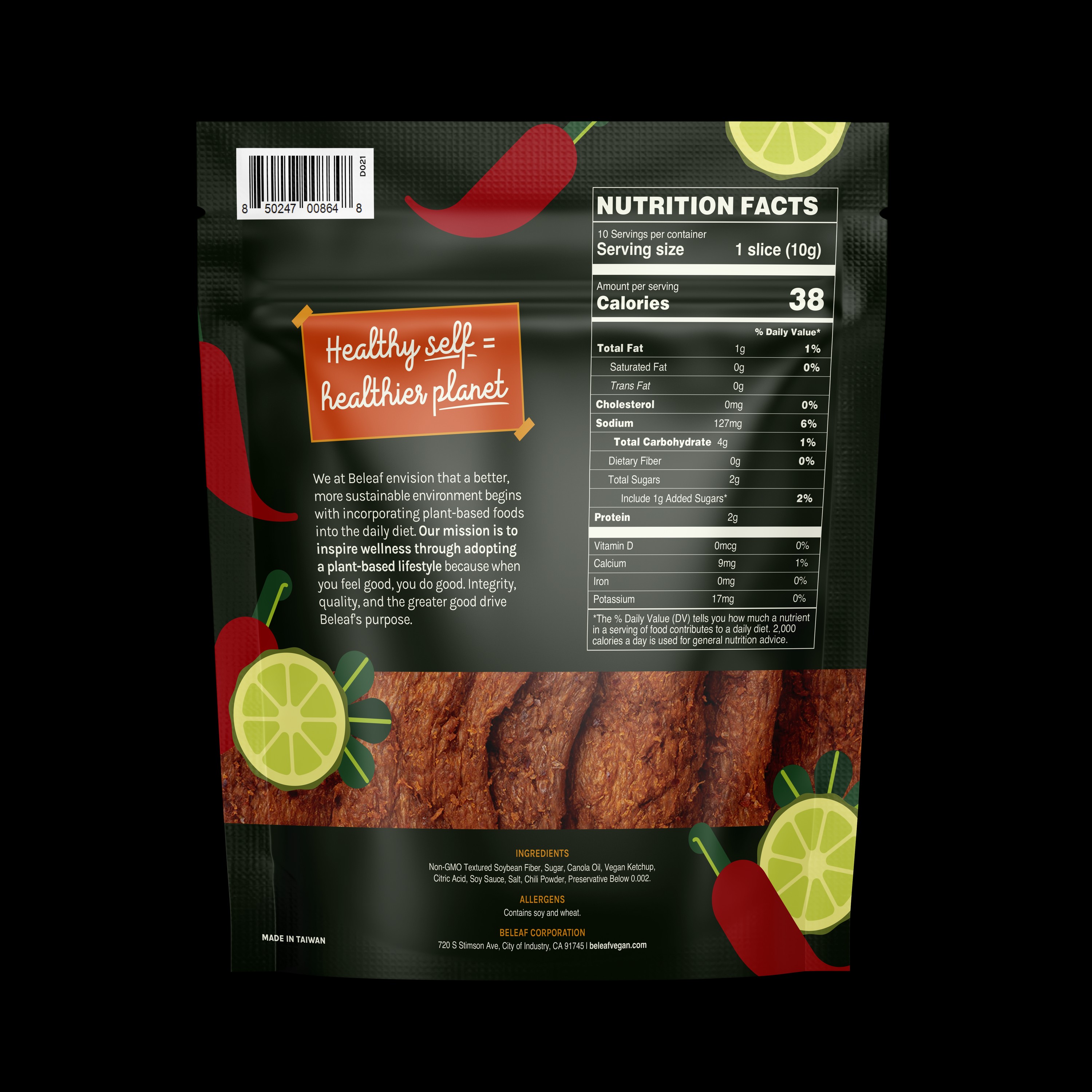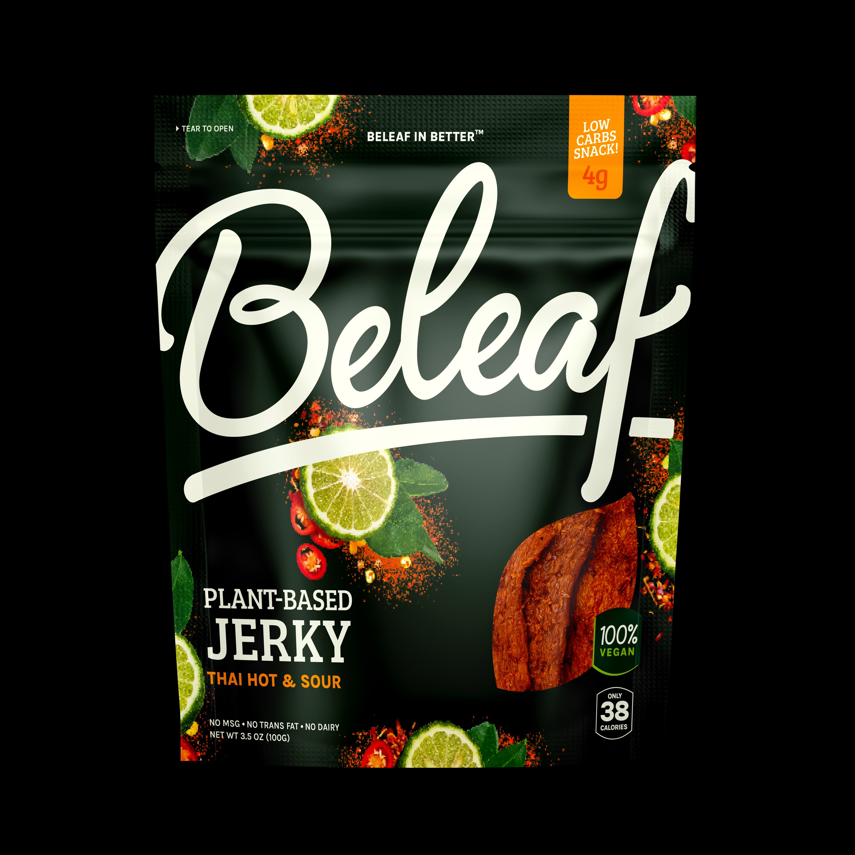 Beleaf's Plant-Based Jerky offers the savory, robust flavors of chili powder, ginger, and black pepper, delivering the authentic taste and texture of traditional beef jerky without the meat. Made with soybean fiber for a wholesome, vegan protein source, this tender, chewy jerky is the perfect plant-based snack to satisfy cravings and enhance your menu!