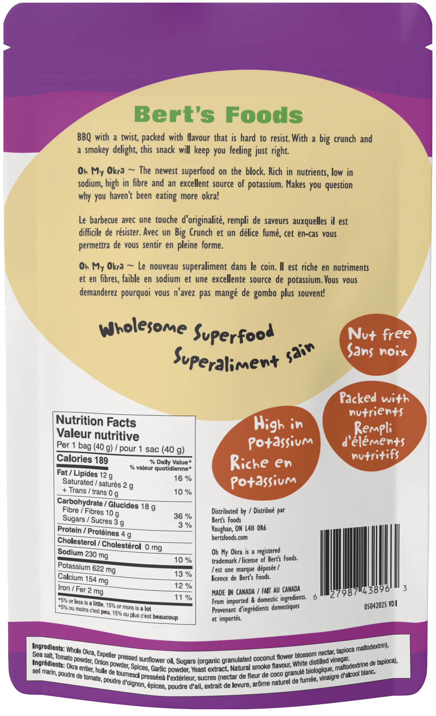 Wholesome crispy okra made with simple ingredients, non-gmo, vegan, gluten free, nut free, and very high in fiber.
